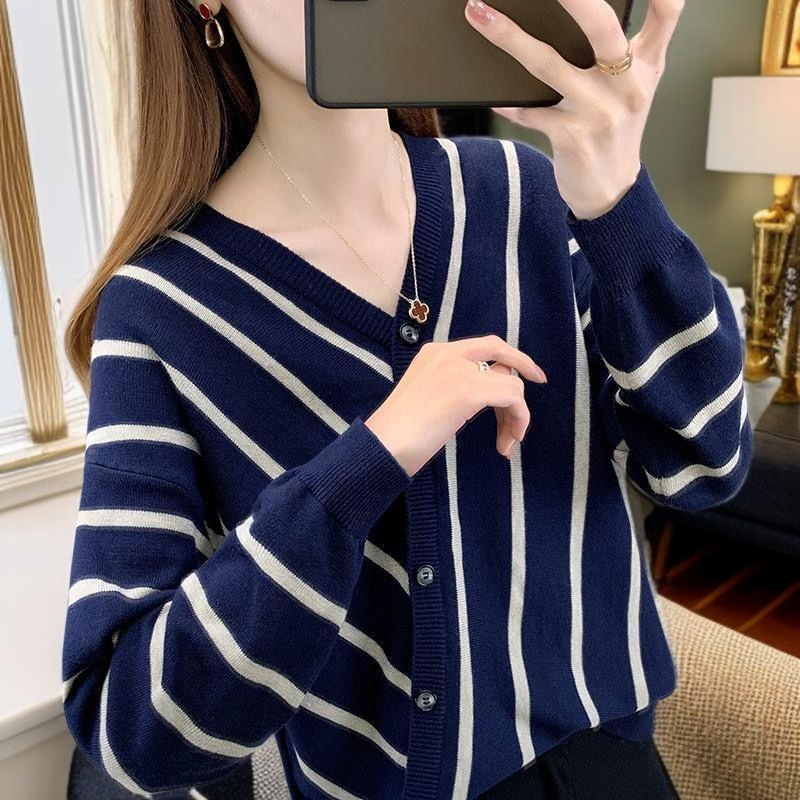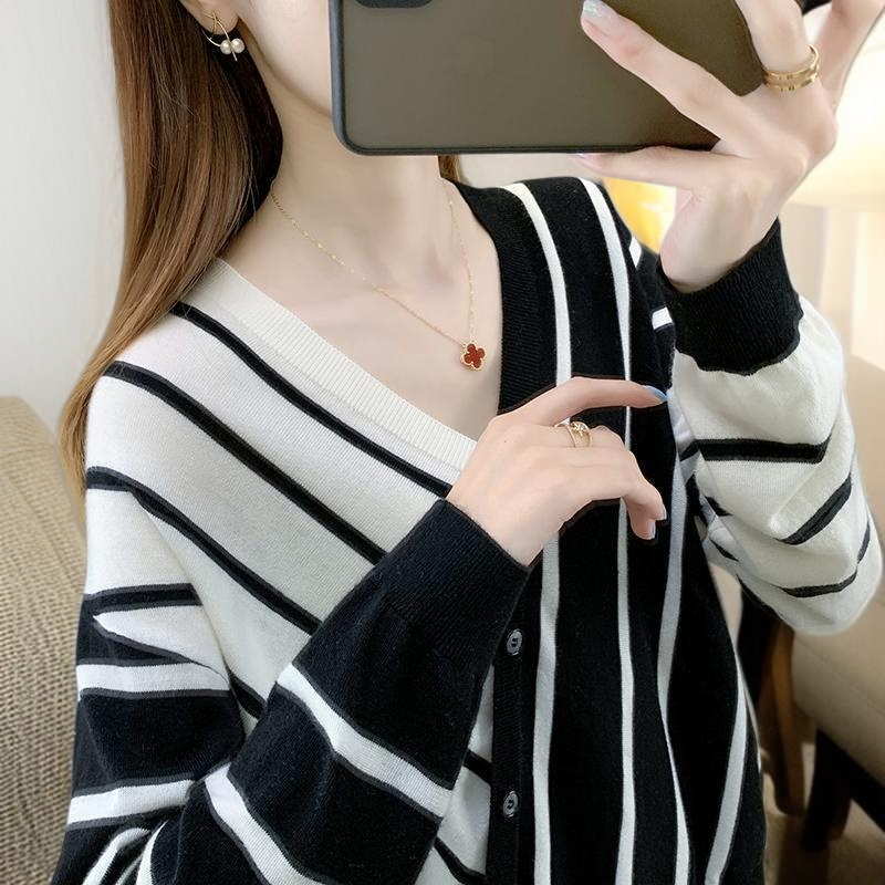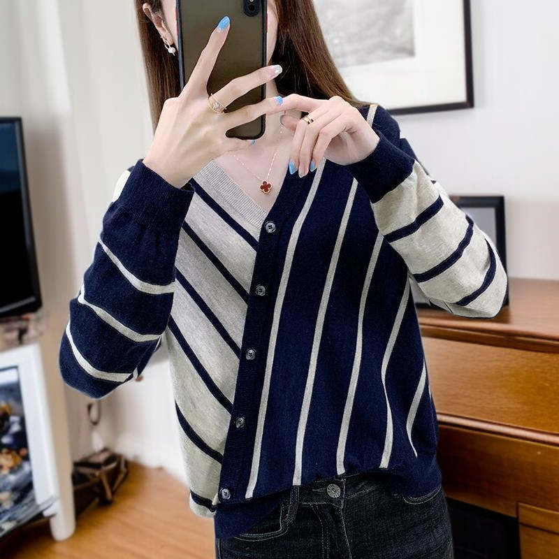 신상 봄가을 디자인 스웨터 여 루즈핏 위에 군더더기 이너 브이넥 니트 톱